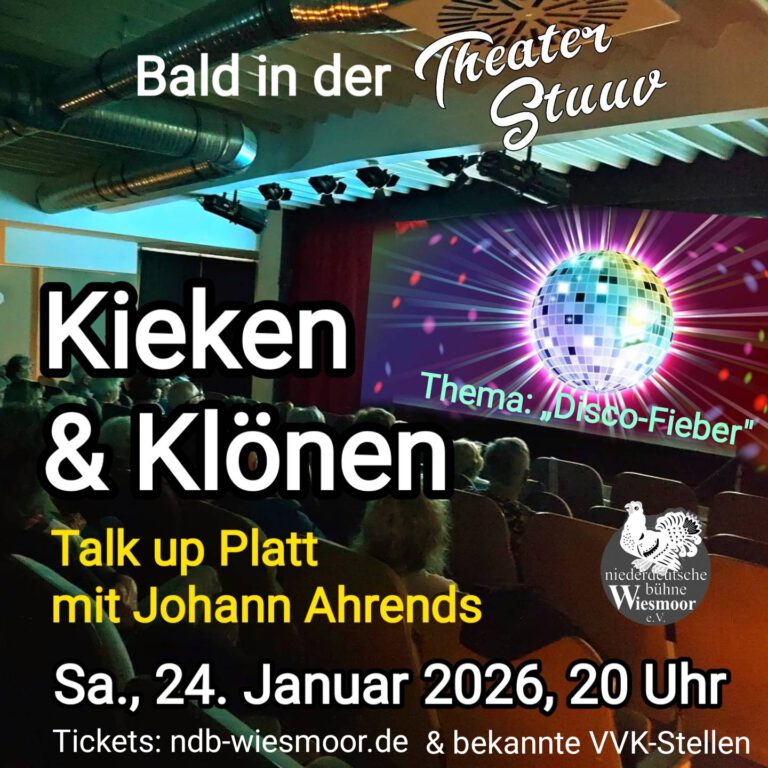 In unserer „Theaterstuuv“ geht es am Samstag, 24. Januar, ab 20 Uhr um die Blütezeit der Discotheken in Ostfriesland.